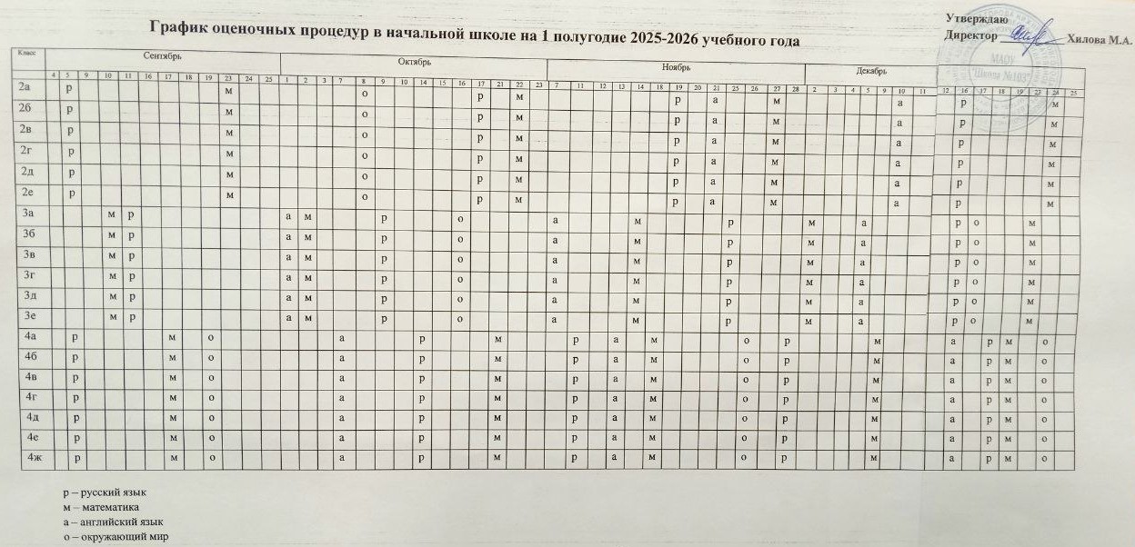 График оценочных процедур в начальной школе на 1 полугодие 2025-2026 учебного года